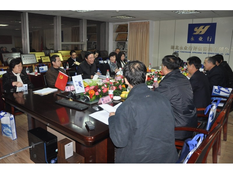 董事长方国成介绍了公司情况和发展战略规划,湖北省土地估价师协会秘书长娄人英介绍了行业发展情况及当前机构执业和发展过程中存在的主要问题。各位调研领导对永业行的成绩予以了肯定,并表示将以专题报告、大会发言、委员提案等形式,在省政协十届五次全体会议上转达相关行业发展意见和建议,以促进评估行业的健康发展。